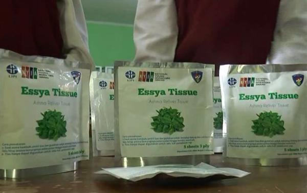 Tisu ekstrak daun kemangi ini sangat praktis dan mudah digunakan. Penderita hanya menghirup tisu saat penyakit asma menyerang. Karya inovatif Syarifa Nurwa dan Efni Fadila ini telah mampu bersaing dan menjadi finalis di ajang National Young Inventors yang digelar di Jakarta beberapa waktu lalu.
