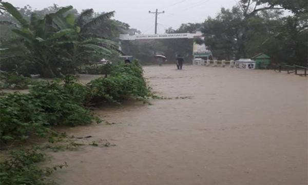 Banjir merendam jalan provinsi yang menghubung Desa Cimaras, Banjarharjo, Brebes, Jateng dengan Kuningan, Jawa Barat. (Foto: BPBD Brebes)