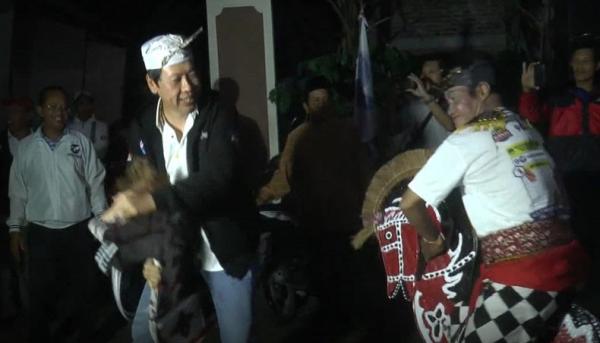 Kedatangan caleg DPR dapil Jateng V tersebut disambut dengan kesenian jaran kepang dan karawitan. Caleg yang juga pengacara tersebut pun diajak untuk menari bersama seniman lainnya.