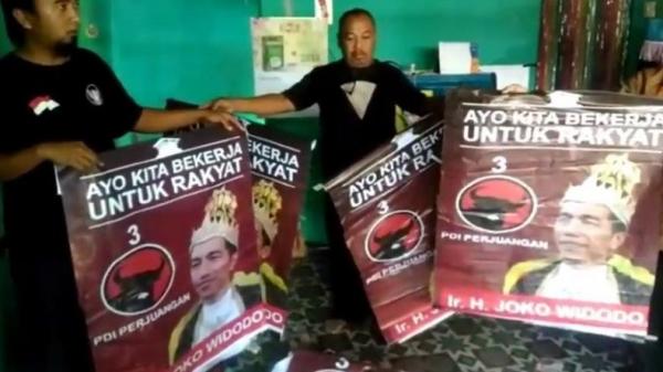 Ratusan poster Jokowi bermahkota raja yang belum dipasang di Kabupaten Banyumas. (Foto: iNews/Yunibar)