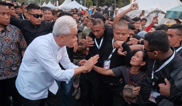 Lebih mengharukan lagi, Ganjar yang sore itu mengenakan kemeja putih tiba-tiba turun dari panggung dan menyalami puluhan ribu warga yang hadir. Meski berdesakan, Ganjar tetap menyalami warga satu per satu sambil berjalan hingga ratusan meter ke Jalan Pahlawan.
