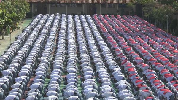 Selian melakukan gerakan periksa kerapian diri secara serentak dan bersama-sama, ribuan siswa juga membentuk koreo bendera Merah Putih. Siswa barisan belakang ditempel kertas berwana merah sehingga saat melakukan gerakan membungkuk terbentuk bendera Merah Putih berukuran besar.