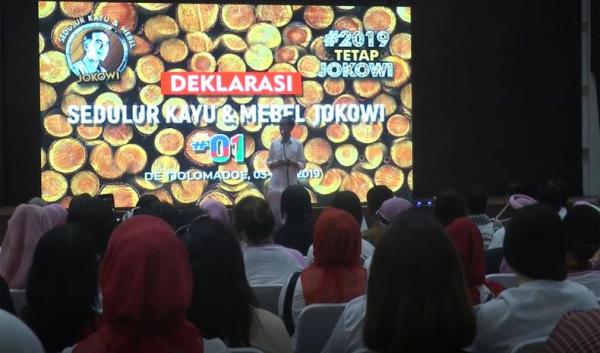 Ditemani sang istri, Iriana, Jokowi menyaksikan langsung deklarasi dukungan dari Sekabel Jokowi yakni, relawan yang terdiri atas para pengusaha dan pekerja di bidang perkayuan dan mebel. Hadir juga dalam kegiatan tersebut di antaranya Gubernur Jawa Tengah Ganjar Pranowo beserta istri, Alwi Shihab, Ruhut Sitompul, dan tim Bravo 5 yang terdiri atas jenderal purnawirawan. Salah satunya Jenderal TNI (purnawirawan) Luhut Binsar Panjaitan.