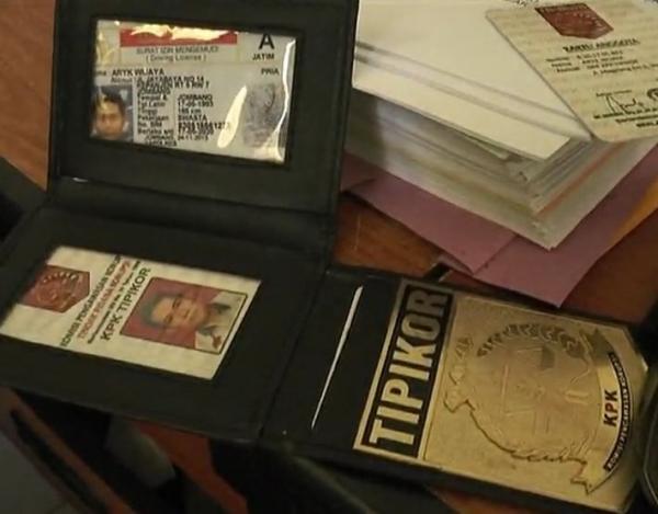 Atribut KPK yang digunakan pelaku untuk menipu calon korbannya. (Foto: iNews/Saeful Efendi)