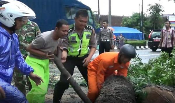 Meski tidak ada korban jiwa, terjangan angin kencang itu menumbangkan belasan pohon dan sempat membuat kemacetan arus lalu lintas di Jalan Raya Pandan Arang, Boyolali.