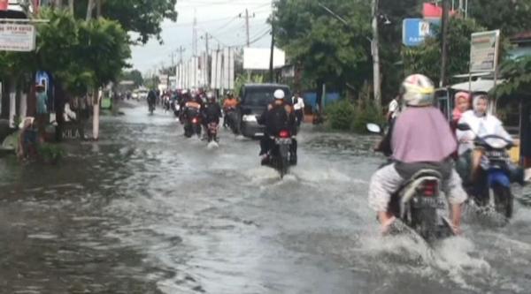 Akibat genangan ini, arus lalu lintas menjadi terganggu. Kendaraan yang melintas pun harus berhati-hati karena jalan yang terendam banjir ini cukup licin.