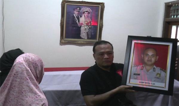 Istri almarhum AKBP Mito, Dian Anindita bersama ketiga anaknya tidak kuasa menahan tangis. Dian juga memeluk ibu mertuanya. Sejumlah kerabat dan tetangga terlihat datang ke rumah duka dan melaksanakan salat jenazah.