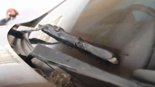 Kobaran api juga merusak kap mobil, slebor sebelah kiri berlubang, dan wiper meleleh. Kaca mobil juga tak jernih seperti semua akibat kena api.