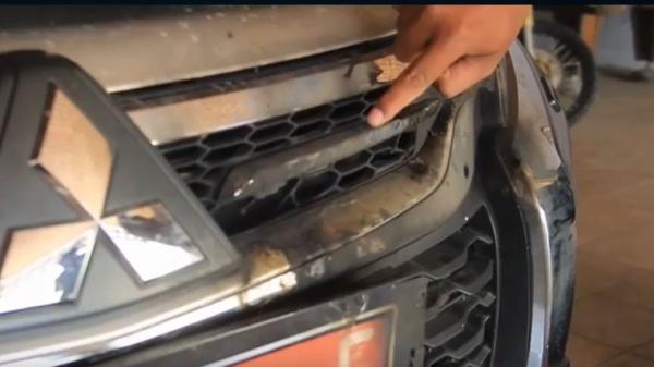 Pantauan iNews, mobil tersebut mengalami kerusakan di bagian gril yang menyaut dengan bemper setelah dilempar plastik berisi bensin dan disulut korek api oleh pria misterius.