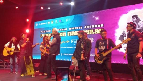 Awalnya, Ganjar memberi sambutan dalam acara yang digelar oleh Institut Musisi Jalanan (IMJ) itu. Kemudian dia diberi kejutan dengan pemberian gitar dari seorang musisi jalanan.