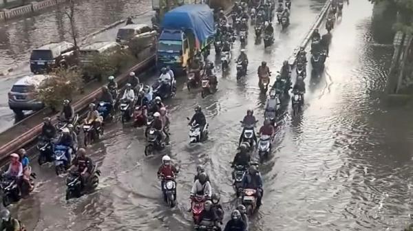 Penampakan Ratusan Kendaraan Terjebak Kemacetan Parah akibat Banjir Kaligawe-Genuk