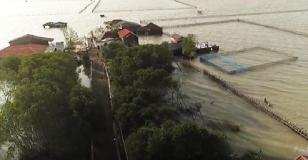 Foto udara pemandagan Desa Bedono yang diambil pada Oktober 2017. Desa ini terendam banjir rob sejak 1998. (Foto: iNews.id/Dok.)