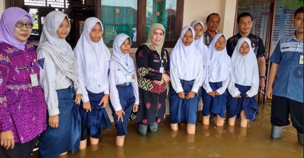 Pantauan iNews, ruangan kelas terendam banjir sekitar setengah meter, namun siswa tetap masuk dan melaksanakan kegiatan belajar mengajar. Siswa terlihat terganggu dan kesulitan karena ada genangan air dalam ruangan kelas. Mereka tak lagi menggunakan alas kaki, bahkan guru pengajar pun harus memakai sepatu boots saat mengajar.