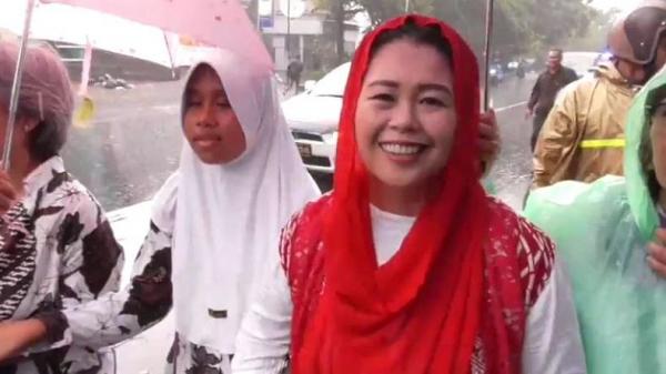 Yenny Wahid ikut berjalan bersama ribuan peserta Kirab Kebangsaan 2019 untuk memperingati Haul ke-9 KH Abdurrahman Wahid atau Gus Dur di Kota Solo, Jateng), Sabtu sore (23/2/2019).(Foto: iNews/Septyantoro)
