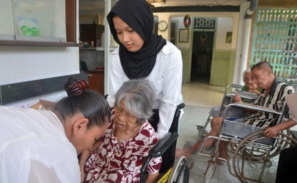 Tak hanya itu, mereka juga tampak dengan semangat membantu Oma Opa yang duduk di atas kursi dorong. Tak sedikit di antara mereka pun terharu atas layanan tersebut.