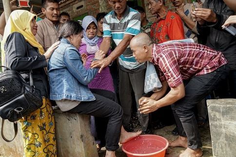 Kedatangan Parinah disambut isak tangis kerabat keluarga dan ketiga anaknya yang telah menanti kepulangannya. Tangisan bahagia terlihat dari wajah seluruh anggota keluarga dan masyarakat setempat. Bahkan sebelum memasuki rumah, kaki Parinah terlebih dulu dibasuh dengan air oleh putra bungsunya, Nurhamdan (29).