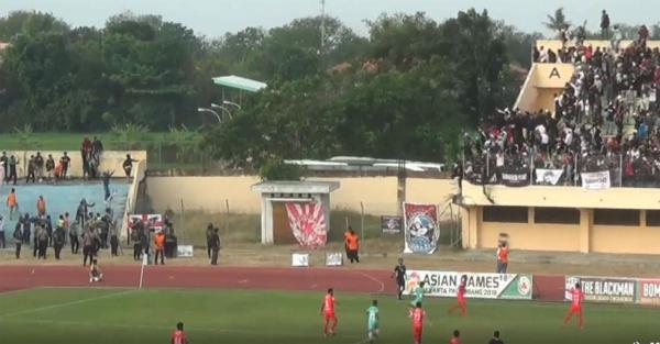 KENDAL, iNews.id - Pertandingan Liga 2 Indonesia antara Persik Kendal dan Persis Solo yang berlangsung di Stadion Kebondalem, Kendal, Senin (9/7/2018) diwarnai tawuran antarsuporter.