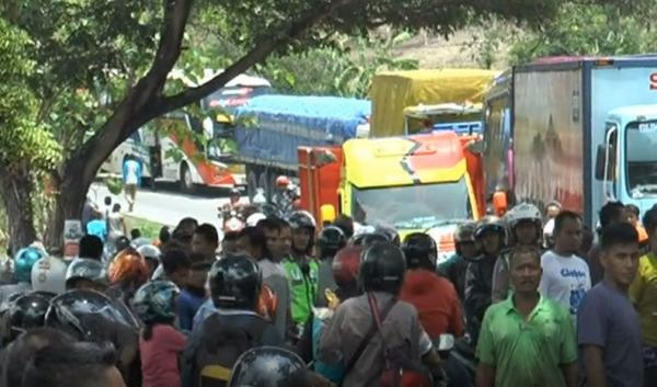 Kemacetan terjadi akibat seluruh badan jalan tertutup bangkai truk dan proses evakuasi yang sulit hingga memakan waktu 9 jam.