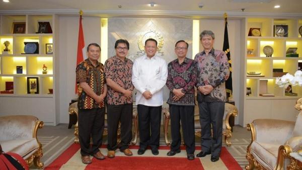 Ketua DPR RI Bambang Soesatyo (Bamsoet), yang juga Ketua Dewan Pembina Yayasan Perguruan Karya Bhakti Purbalingga, bertemu dengan jajaran Rektorat UNPERBA di ruang kerja Ketua DPR RI, Jakarta, Senin (2/9/2019). (Foto: IST)